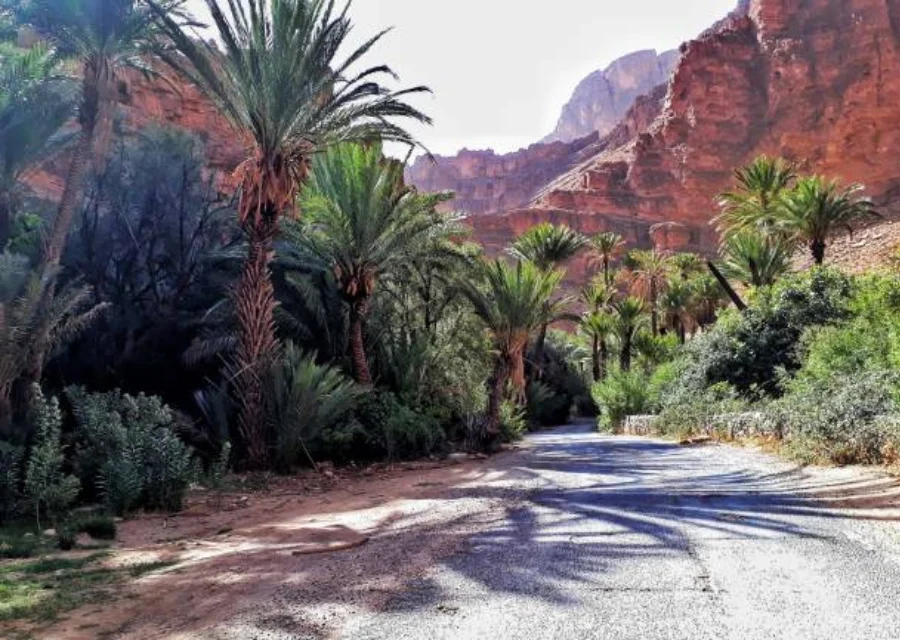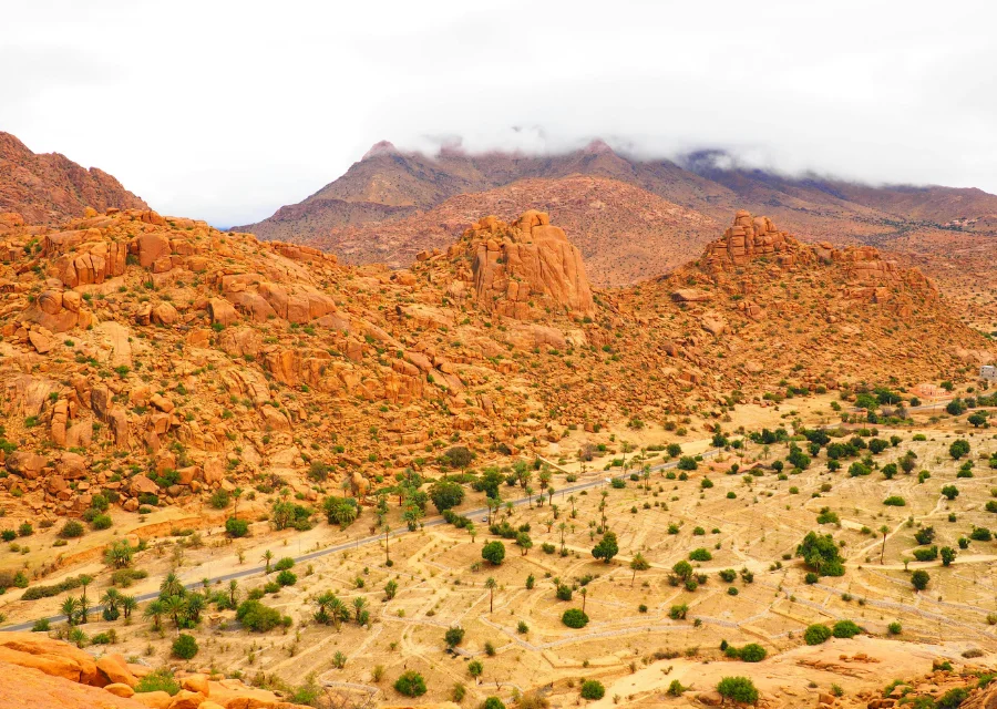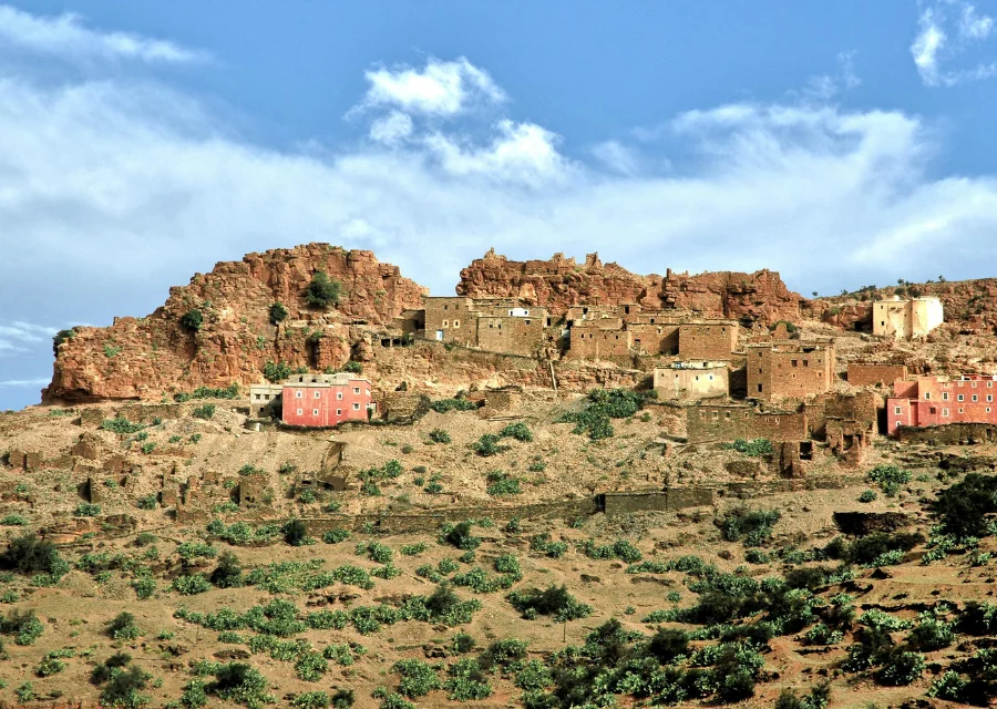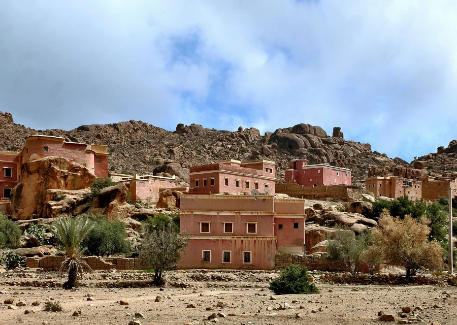 Embark on an impressive one-day excursion through the breathtaking Ait Mansour Gorges, located southeast of Tafraout. These gorges, situated just 30 km from Tafraout, wind their way through the ancient Anti-Atlas mountain range, nestled among rugged, arid slopes. Here, one of the most stunning palm groves of the south rises proudly, offering an extraordinary panoramic view. Pictorial villages cling to the cliffs, while the oasis remains lush and vibrant year-round, with abundant water and thriving almond, palm, and olive trees.