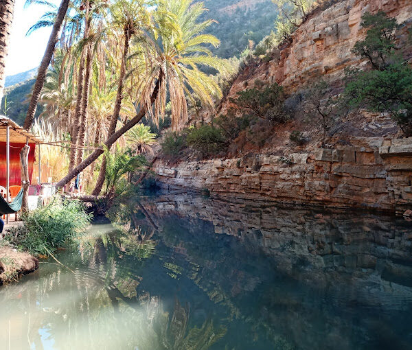 This scenic route takes you through the winding roads of the High Atlas Mountains, nestled amidst a vibrant palm grove, with lush argan trees, cacti, and thuja shrubs lining the way. As you pass through quaint Berber villages clinging to the rocky cliffs, the valley unfolds into a stunning canyon with a peaceful oasis and a flowing river.